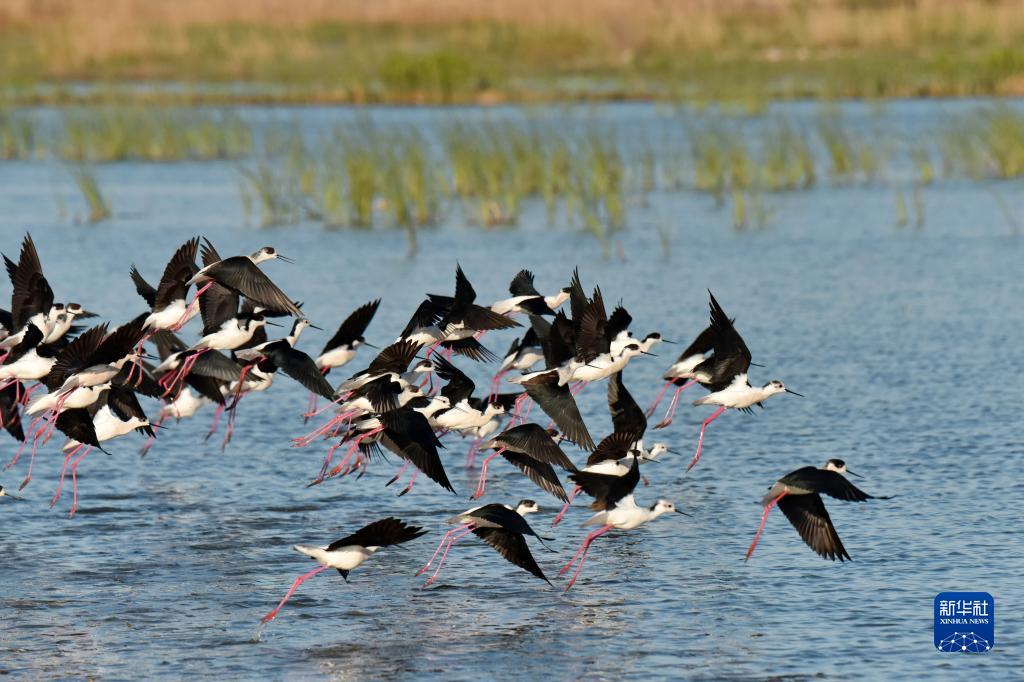 在雄安新區白洋淀拍攝的鳥群(2022年4月15日攝)。 新華社發(周龍山 攝)