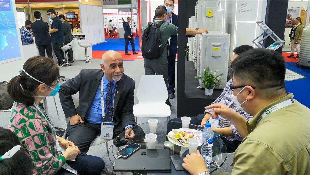 在阿聯酋迪拜,浙江參展企業同采購商交流。(受訪者供圖)