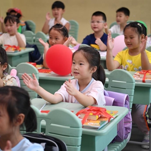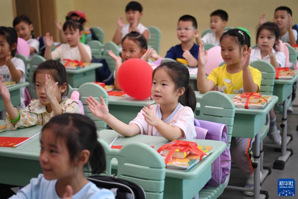 2022年9月1日,河北雄安新區容東片區容和悅容小學一年級新生在上開學第一課。新華社記者 朱旭東 攝