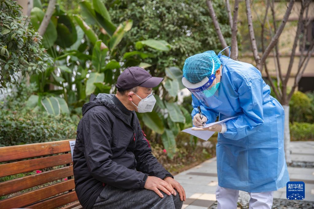 12月15日,在重慶市兩江新區康美街道籌備二組社區,社區衛生服務中心的醫務人員核對上門接種新冠疫苗的老人信息。新華社記者 黃偉 攝