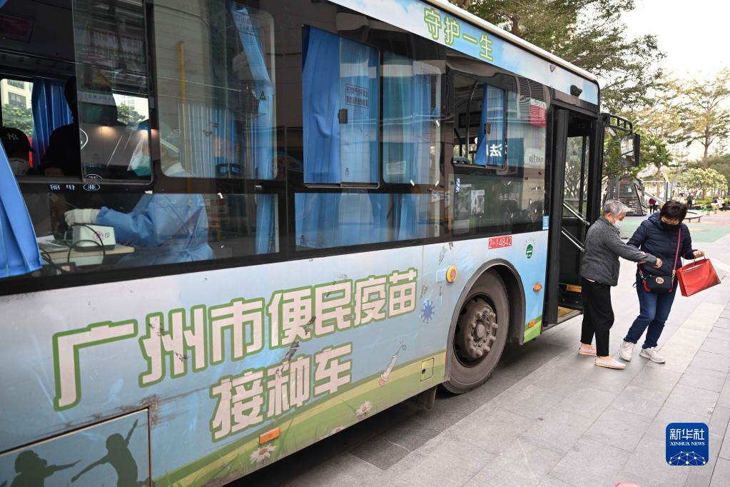 12月12日,在廣州市荔灣區廣鋼新城,老年居民在接種新冠疫苗后走下便民接種車。新華社記者 鄧華 攝