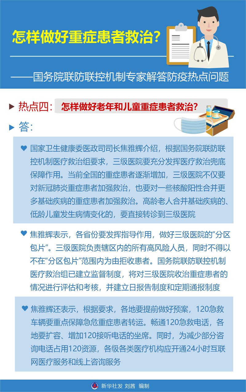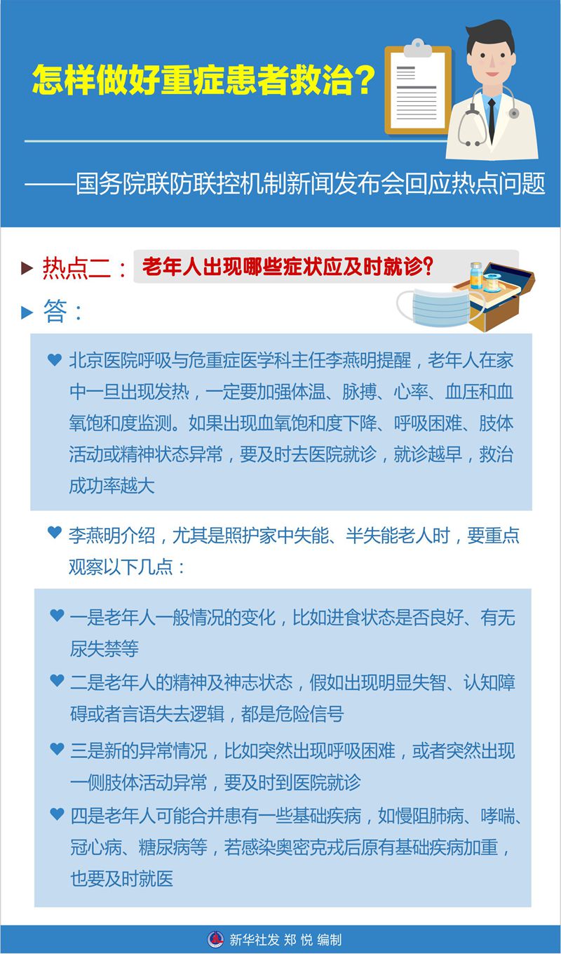 老年人出現哪些癥狀應及時就診?怎樣做好老年和兒童重癥患者的救治?圍繞公眾關注的熱點問題,國務院聯防聯控機制組織專家作出解答。