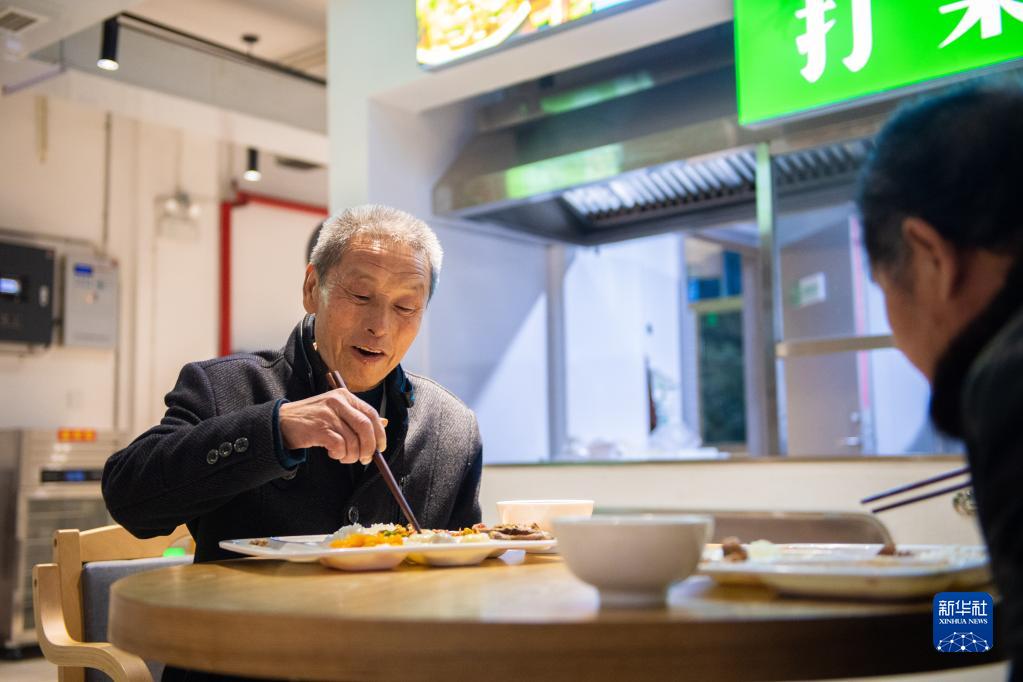 老人在湖南省常德市武陵區長者大食堂就餐(2021年11月16日攝)。新華社記者 陳思汗 攝