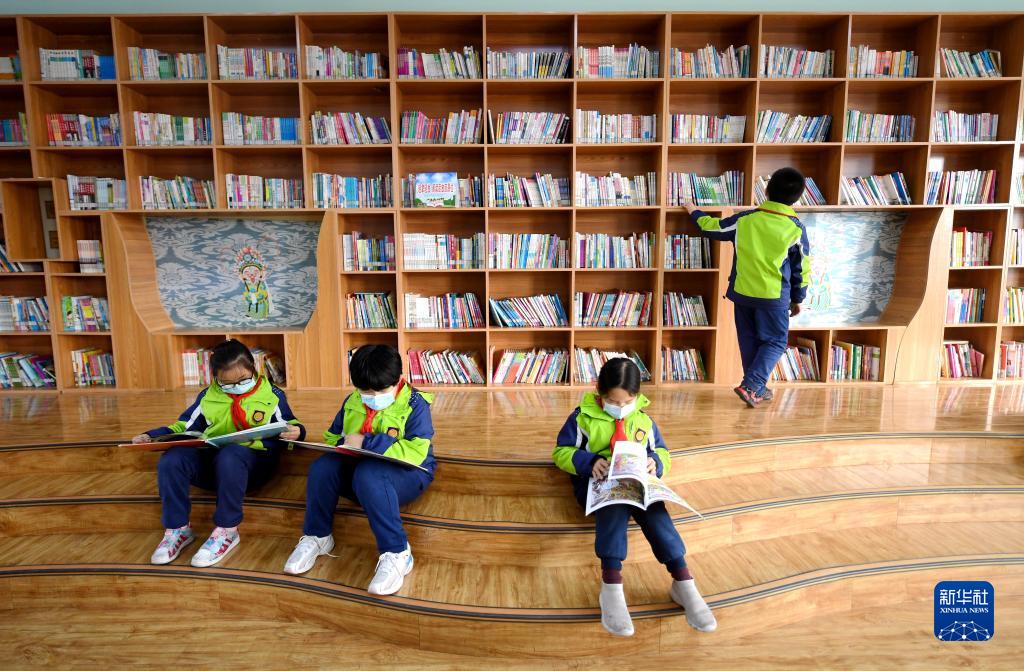 河北省石家莊市橋西區裕華西路小學參加課后托管的學生在圖書館閱讀(2021年3月11日攝)。新華社記者 王曉 攝