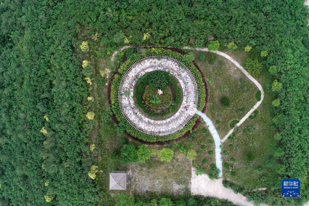 在山西省靈石縣兩渡鎮,山西焦煤汾西礦業兩渡煤業公司在矸石山上建起來的公園(2018年9月4日攝,無人機照片)。新華社記者 詹彥 攝