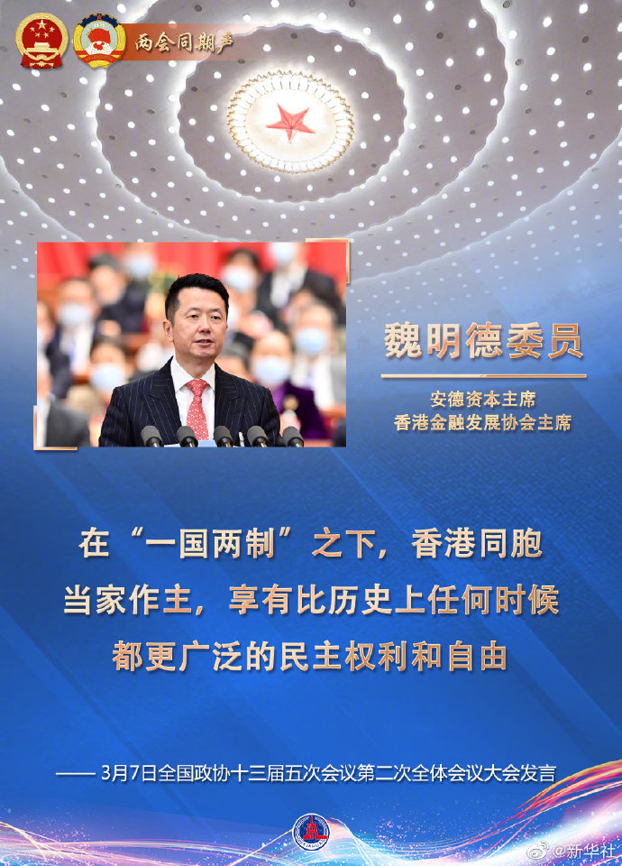各位委員,香港第五波新冠肺炎疫情暴發后,習近平總書記十分關心,專門作出重要指示,中央全力支援香港抗疫,積極調配醫護人員,有力統籌防疫物資,著力保障民生所需。我們堅信,在中共中央堅強領導下,以港為家園,以國為后盾,我們一定能打贏這場抗疫阻擊戰。疫情過后,香港必將重現“東方之珠”的光彩,必將更好發揮獨特優勢和作用,為世界和平發展作出貢獻,共同推動構建人類命運共同體。