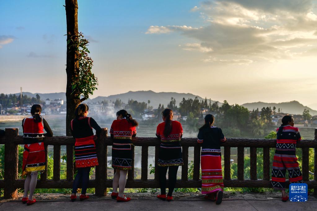 云南省騰沖市清水鄉三家村中寨司莫拉佤族村村民在廣場上休息(2020年5月15日攝)。新華社記者 胡超 攝