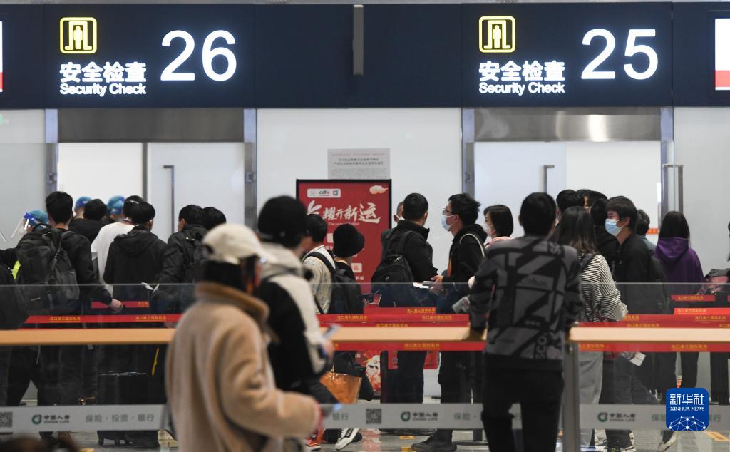 1月7日,在??诿捞m國際機場,旅客排隊等待安全檢查。新華社記者 楊冠宇 攝