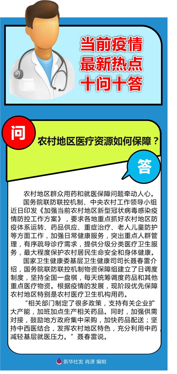 國家衛生健康委基層衛生健康司司長聶春雷介紹,國務院聯防聯控機制物資保障組建立了日調度制度,堅持全國一盤棋,每天統籌調度藥品和其他重點醫療物資。根據疫情的發展,現階段優先保障農村地區特別是農村醫療衛生機構用藥。