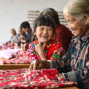 “蒙山高,沂水長,我為親人縫衣裳?!贝謇锏囊拭尚∶抟\項目為空巢老人及留守婦女提供了60余個崗位,還成功申請了省、市級非物質文化遺產,并依托手工縫制的傳統優勢,布置了非遺民俗展廳。