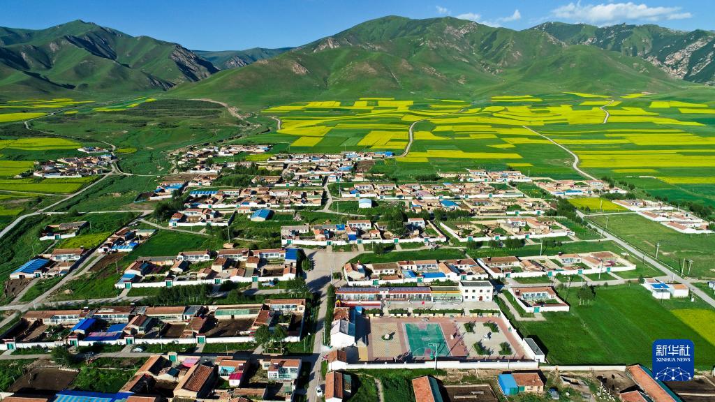 這是青海省海北藏族自治州海晏縣金灘鄉東達村夏日景色(無人機照片,資料照片)。新華社發(李勇 攝)