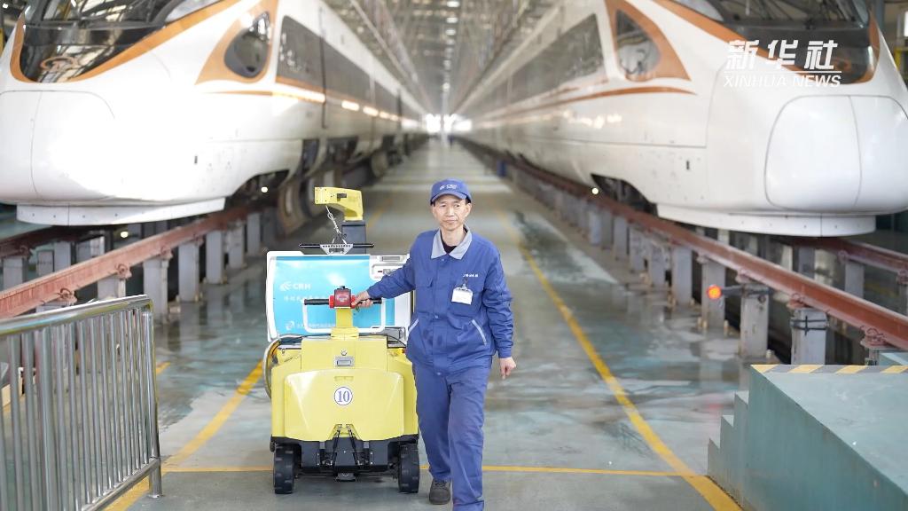 上海虹橋動車所是長三角地區最大的高鐵維?;?,負責多趟高鐵列車的檢修和保養。