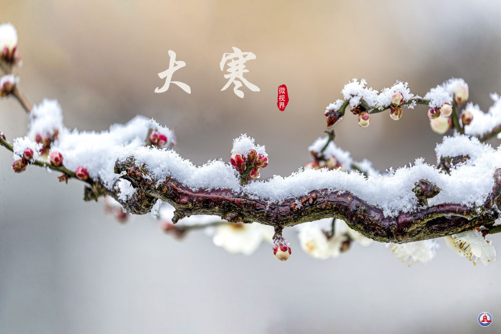 ↑湖北省宣恩縣珠山鎮,梅花被雪覆蓋。新華社發(宋文 攝)
