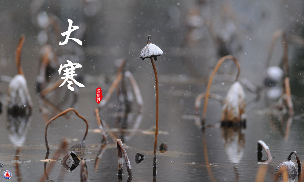 ↑山東省滕州市龍泉廣場,雪花落在蓮蓬上。新華社發(李志軍 攝)
