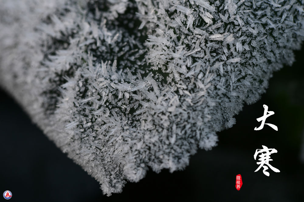 ↑云南省曲靖市羅平縣金雞村,一片樹葉上鋪滿霜花。新華社發(毛虹 攝)