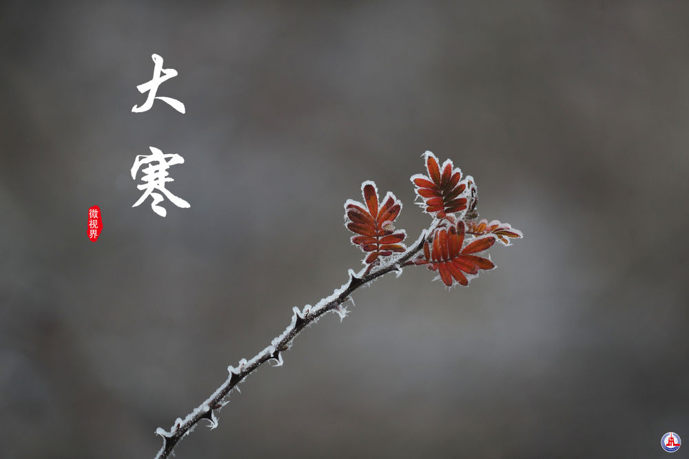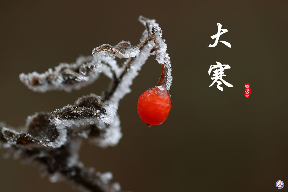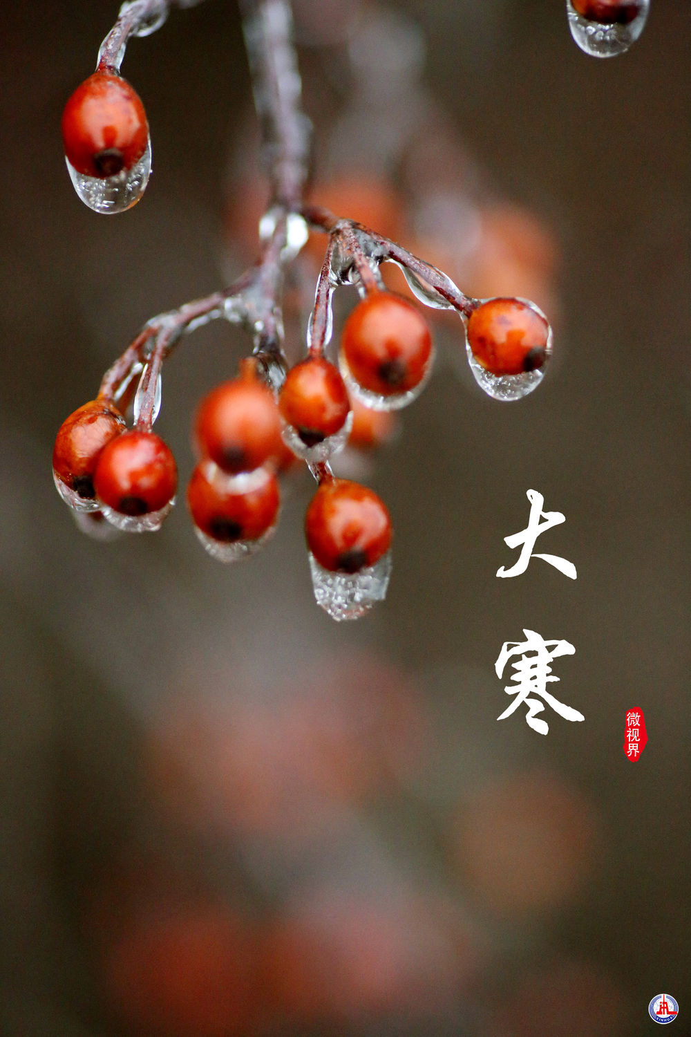 ↑江蘇省連云港市,野生小紅果上掛著冰。新華社發(王春 攝)
