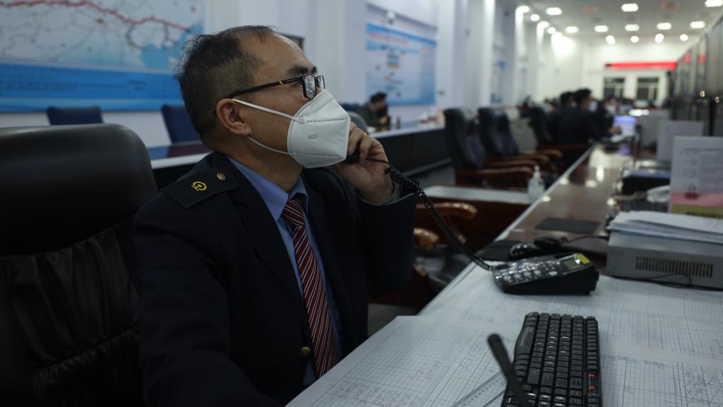 1月10日,馬世安在協調調度列車。新華社記者 王怡靜 攝