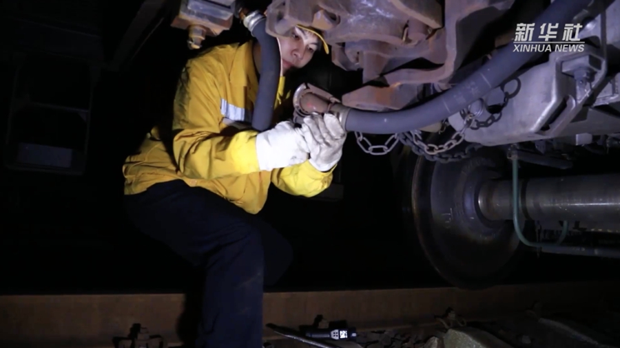 在編組場上,“車輛大夫”的工作就是給這些貨車進行“體檢”,及時處理故障和排查安全隱患問題,確保鐵路運輸大通道的安全。