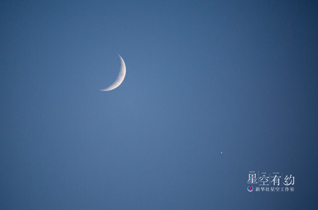 2021年11月8日傍晚在江西省九江市都昌縣拍攝的金星合月。新華社發(傅建斌攝)