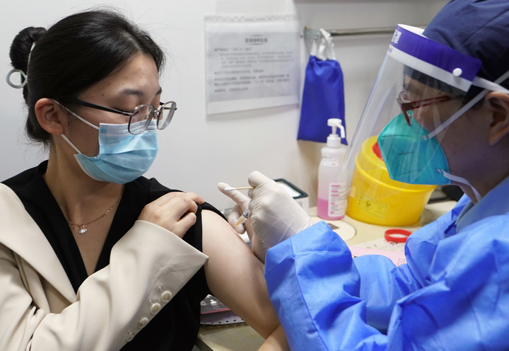 2022年11月11日,一名女士在復旦大學附屬婦產科醫院接種九價HPV疫苗。 新華社記者 劉穎 攝