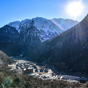 漫步玉麥鄉,一座座藏式小樓掩映在蒼松之間,干凈整潔的村道通向人家,宛如一幅冬日里的水墨畫卷。