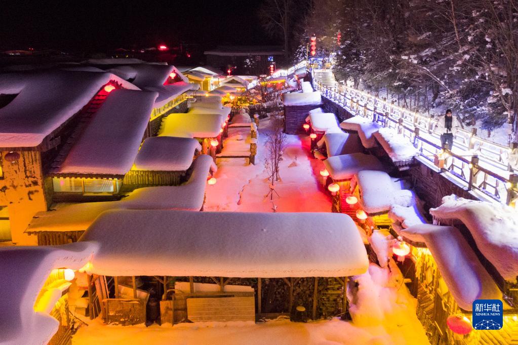 2022年12月14日拍攝的黑龍江雪鄉景區夜景(無人機照片)。新華社記者 謝劍飛 攝