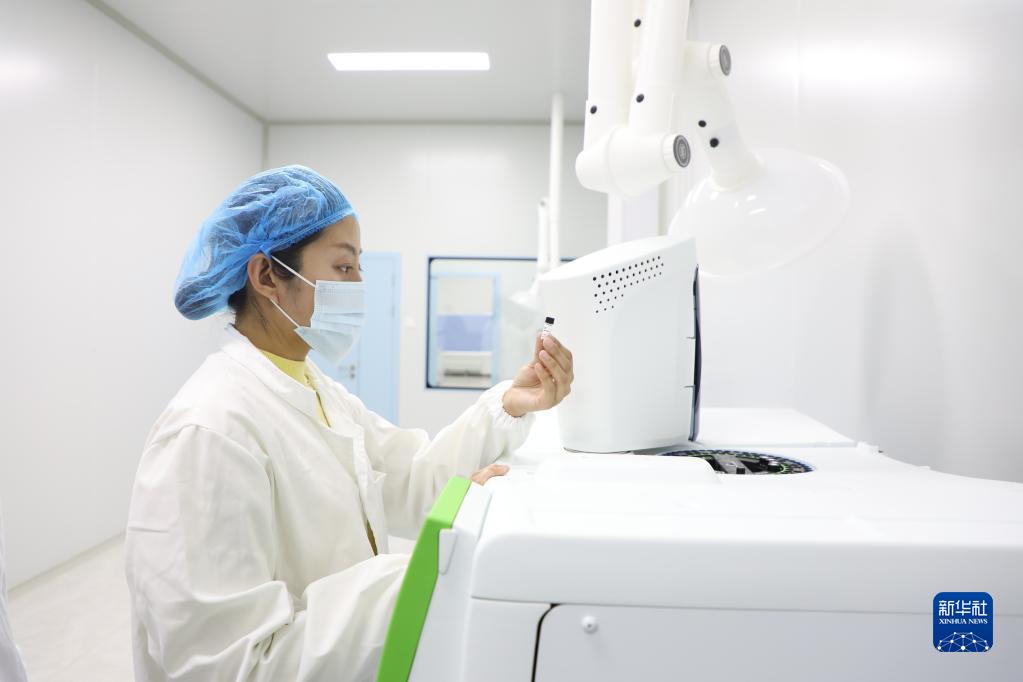 在黑龍江省哈爾濱市阿什河街道民合村,北大荒泰華有機食品股份有限公司的生產車間里,工作人員在進行相關檢測(2022年11月18日攝)。新華社發(丁寧攝)