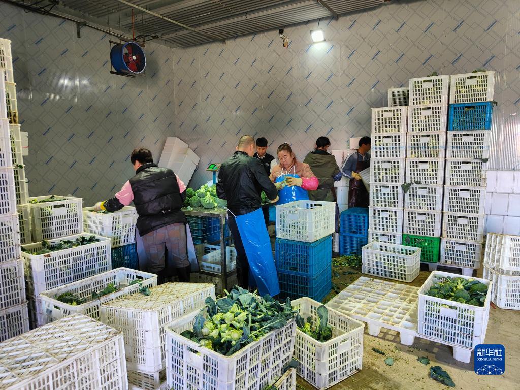 2022年10月5日,在吉林省梨樹縣北夏家村,聚豐種植農民專業合作社正在分揀西蘭花。新華社發