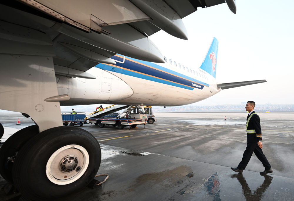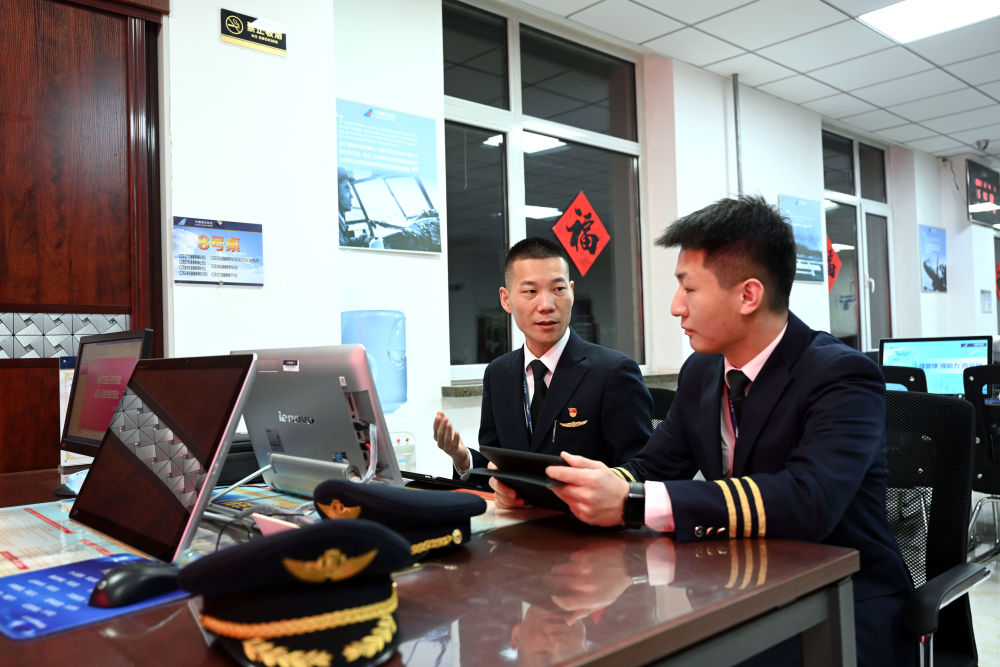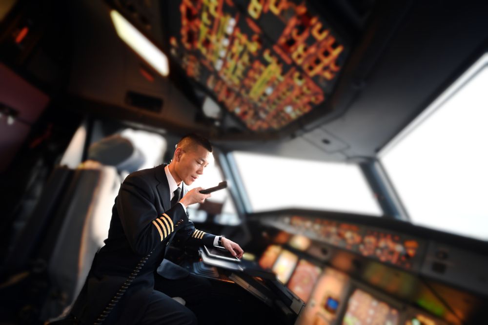 馬保利在飛機駕駛艙內進行機長廣播(駕駛艙進行了虛化處理)。