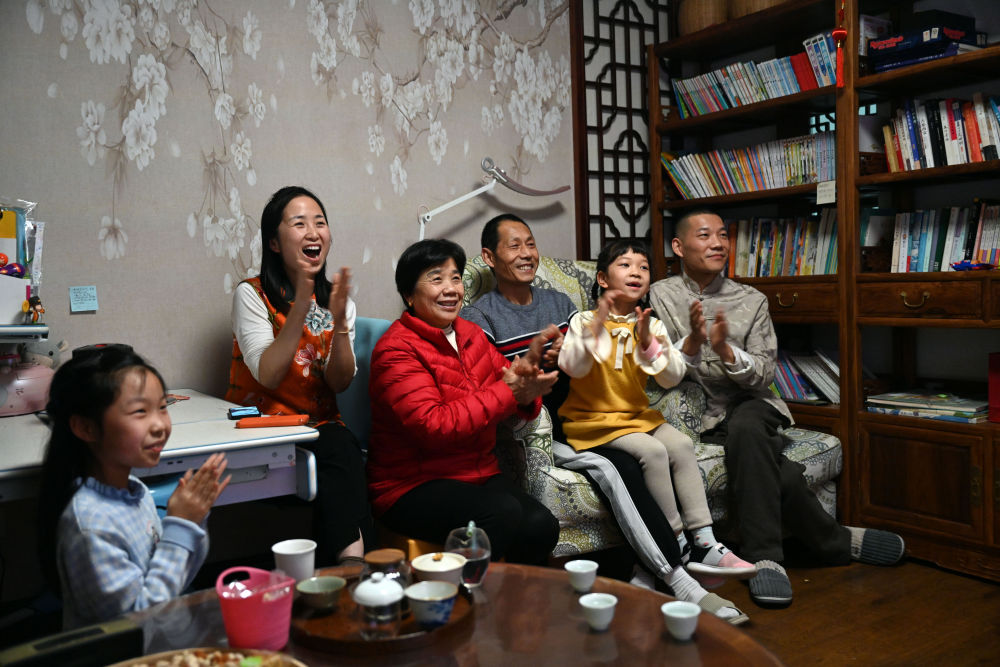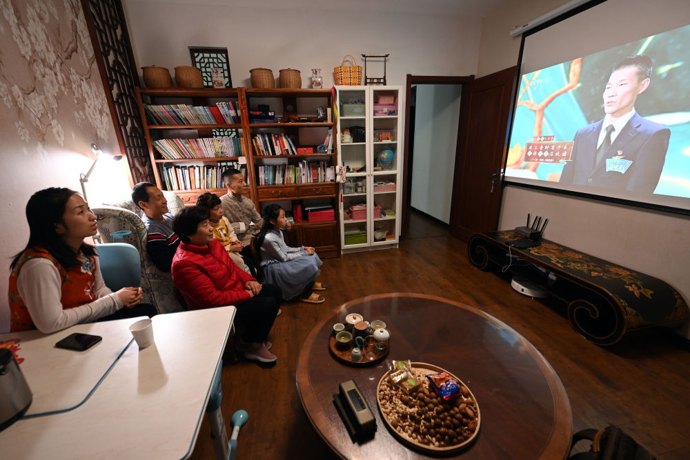 馬保利與家人一起收看《2023中國詩詞大會》決賽。