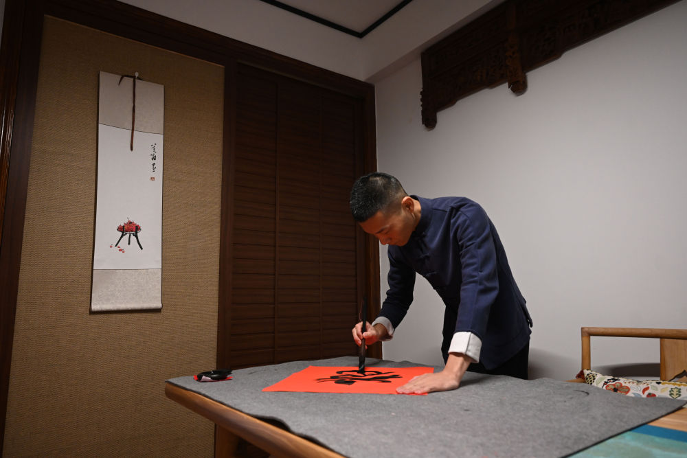 馬保利在家中與孩子吟詩玩“飛花令”。