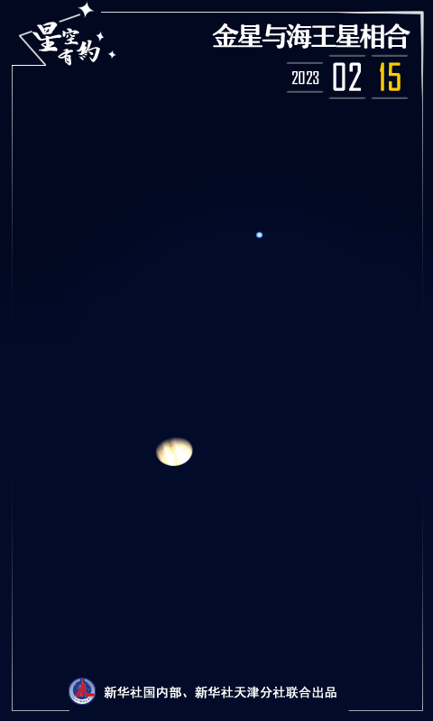 新華社天津2月13日電(記者周潤?。┨煳目破諏<医榻B,2月15日晚,金星與海王星相合上演“結伴游”,這是一次非常難得的行星極近現象,屆時如果天氣晴好,感興趣的公眾可借助小型天文望遠鏡見證這“親密一刻”。