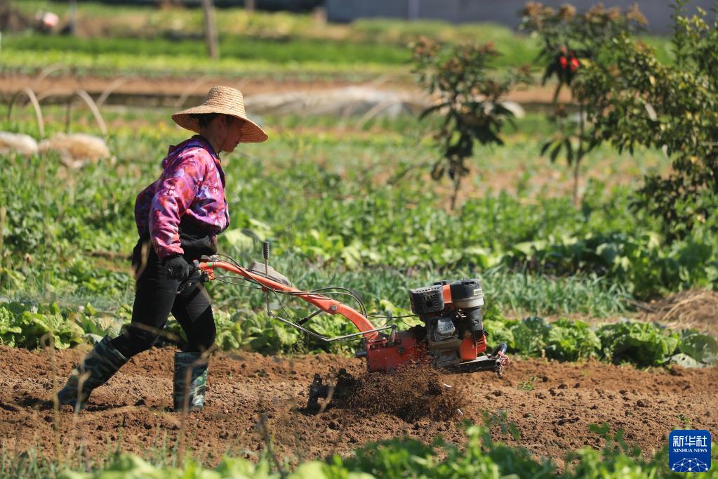 1月31日,在江西省吉安市泰和縣澄江鎮南門村,農民在田間翻耕整地,準備春播春種。新華社發(鄧和平 攝)