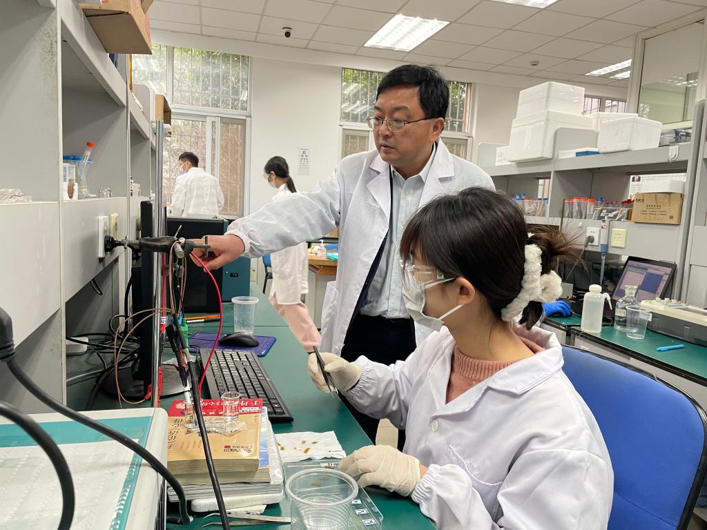 2月10日,藍閩波在華東理工大學的實驗室指導學生。新華社記者郭敬丹 攝