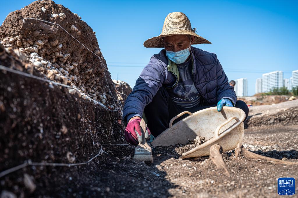 考古工作者在云南古城村遺址現場進行清理發掘工作(2022年11月24日攝)。新華社記者 王冠森 攝