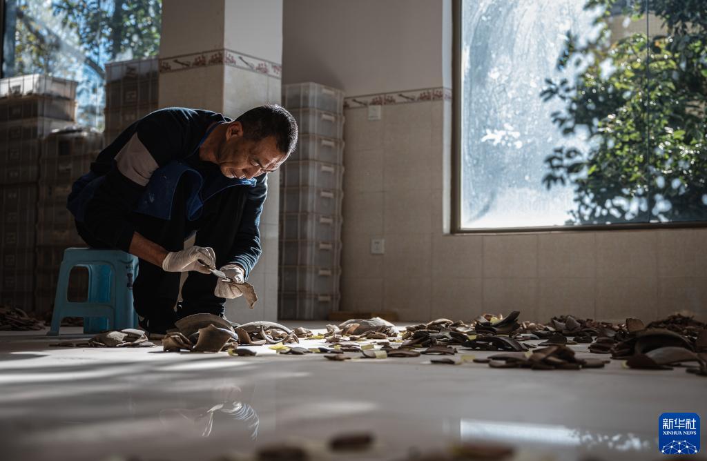 云南古城村遺址考古領隊、云南省文物考古研究所副研究館員周然朝在整理云南古城村遺址出土的文化遺物(2022年11月24日攝)。新華社記者 王冠森 攝