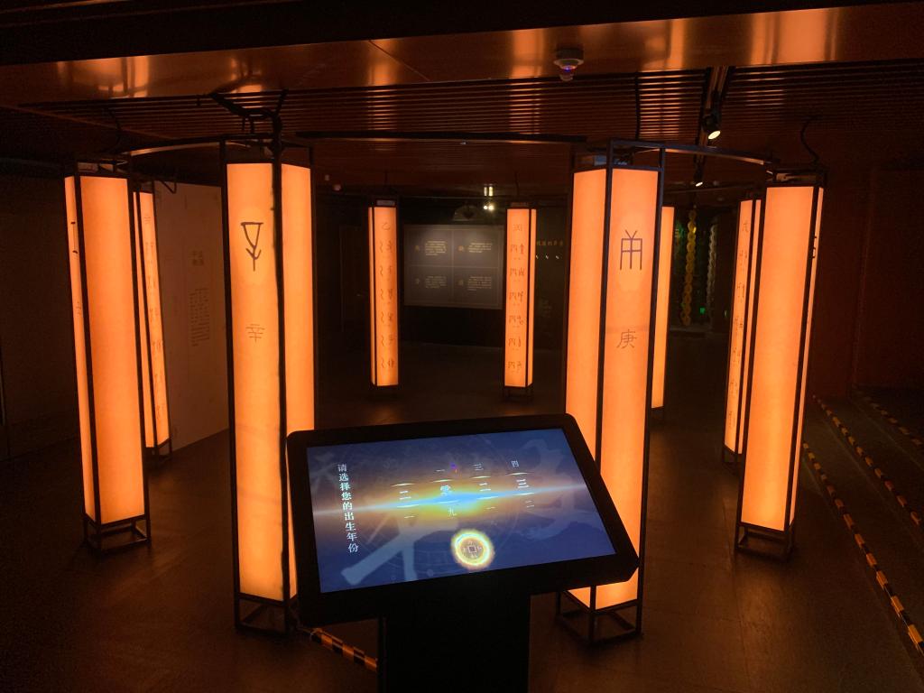 在“殷墟甲骨”專題展廳,設置了“立體畫卷”“姓屬林”“模擬占卜場景區”,利用空間立體復原以及聲光電相結合的手段,帶給觀眾全新的體驗?!肮湃耸褂玫奈淖志购臀覀儸F在的如此相似”“我們一筆一畫寫下的文字承載著來自遠古的文化記憶”……展廳中不時傳來觀眾的驚嘆聲。