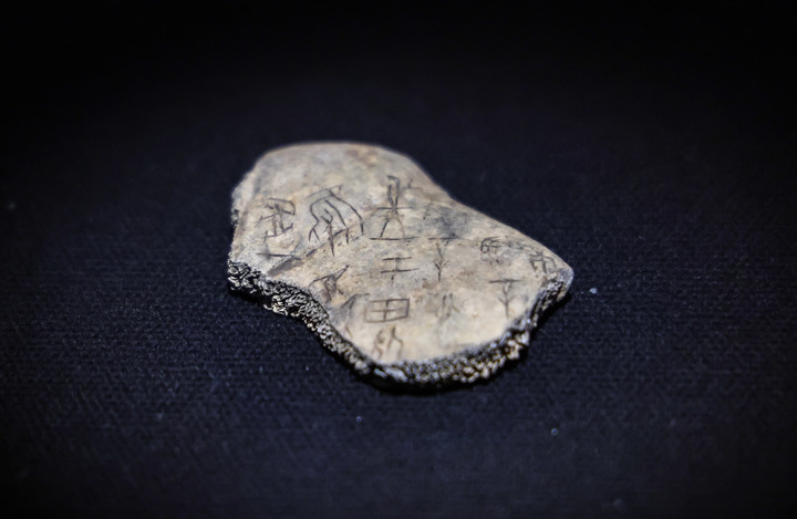 “殷墟甲骨”專題的“甲骨2174”。左上為甲骨文“兔”。新華社記者殷剛 攝