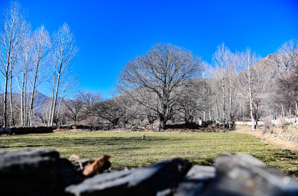 山南市加查縣拉崗村到處可見的核桃樹(2月1日攝)。新華社記者格桑邊覺 攝