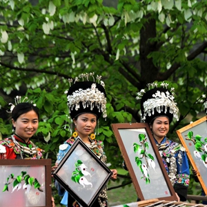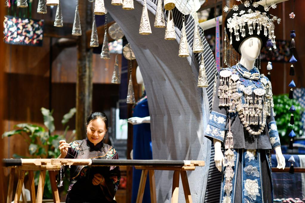 “我帶動起來的繡娘比較多,白天忙完公司的事,晚上就挨家挨戶到她們家里,年老的、年輕的,坐在一起聊到很晚,把各種各樣的苗繡拿來對比,有時候大家還就刺繡技藝來上一番熱烈的討論?!笔惼秸f。除了同繡娘交流切磋技藝外,她還以此為契機,深入苗鄉群眾了解非物質文化遺產傳承面臨的挑戰。