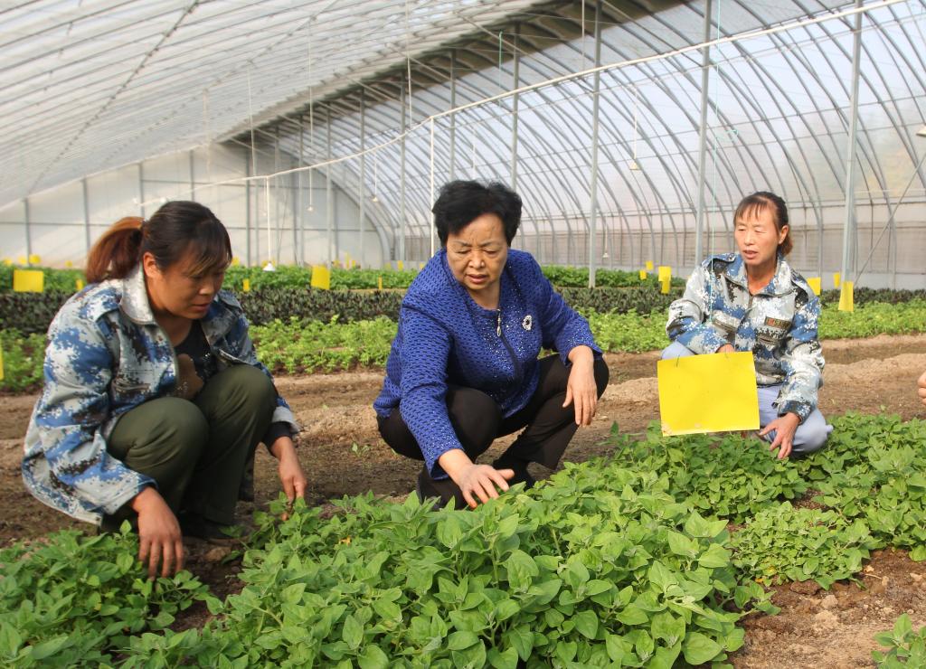 王銀香與種植戶交流農作物長勢。(受訪者供圖)