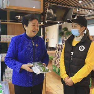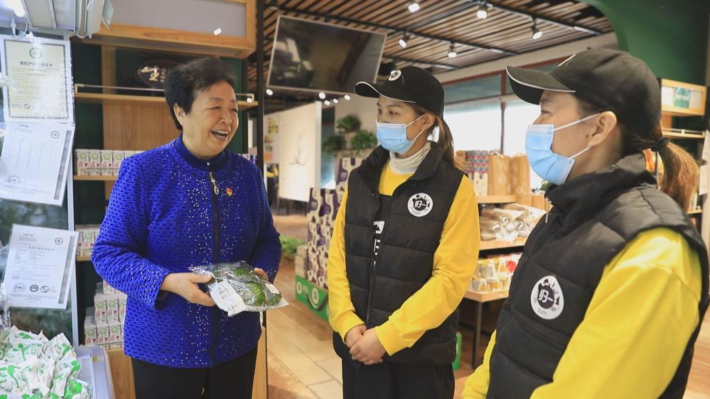 王銀香與五里墩村有機食品體驗店的店員進行交流。(受訪者供圖)