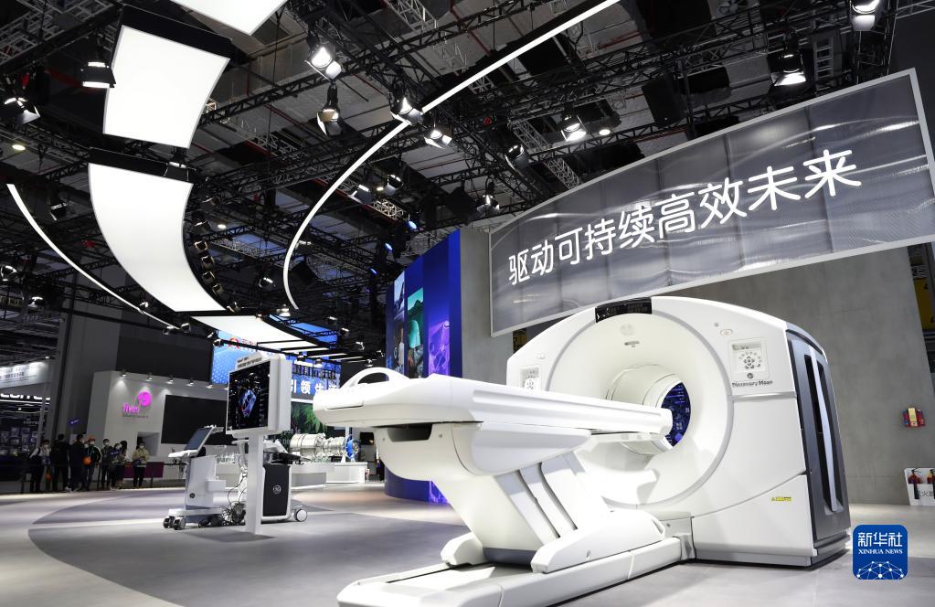 2022年11月2日拍攝的美國GE公司在進博會展臺展出的一臺大型醫療設備。新華社記者 方喆 攝