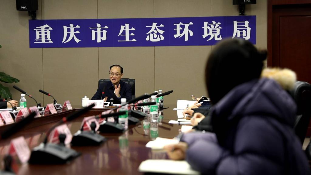 圖為余國東在重慶市生態環境局召開會議。新華社記者 李愛斌 攝