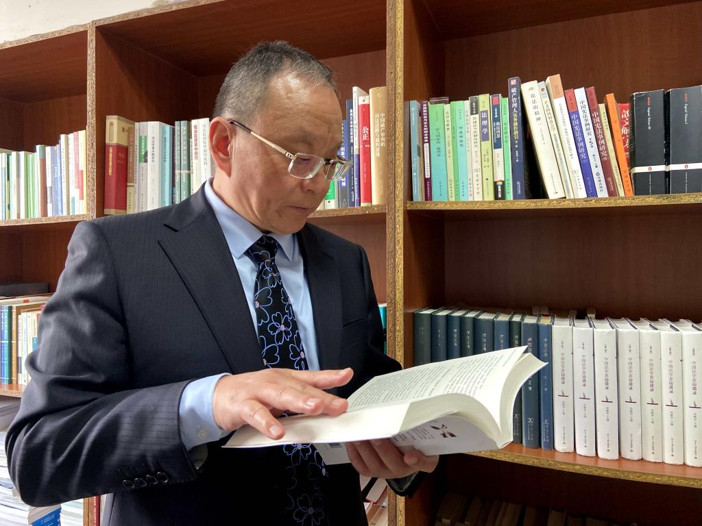 2月23日,湯維建在辦公室翻閱法律書籍。新華社記者魏夢佳 攝