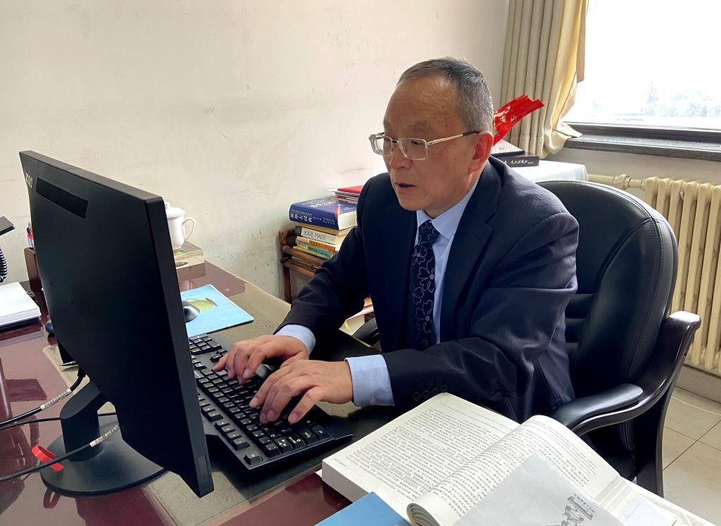 2月23日,湯維建在辦公室工作。新華社記者魏夢佳 攝
