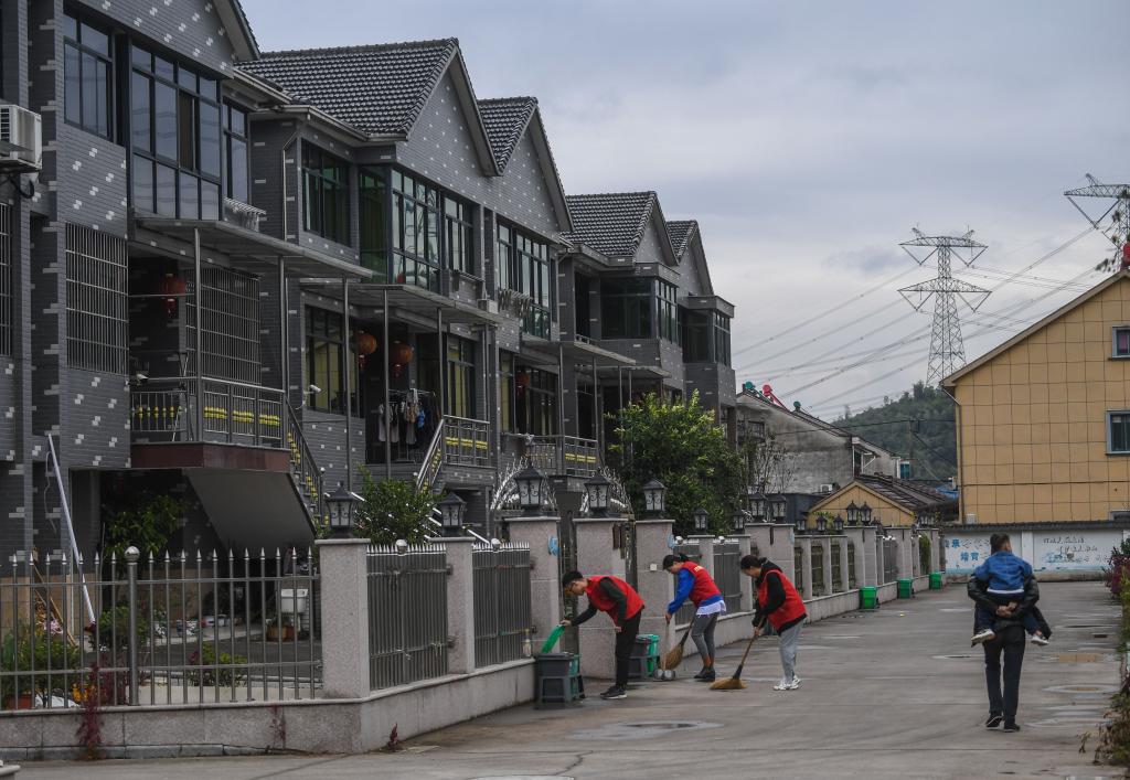 2020年11月26日,志愿者在浙江省湖州市吳興區東林鎮南山村的農民新居巡查垃圾分類情況。新華社記者 徐昱 攝