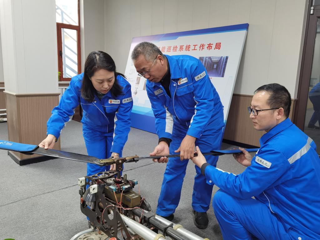 刁克劍(中)和同事在工作中。新華每日電訊記者 于力 攝