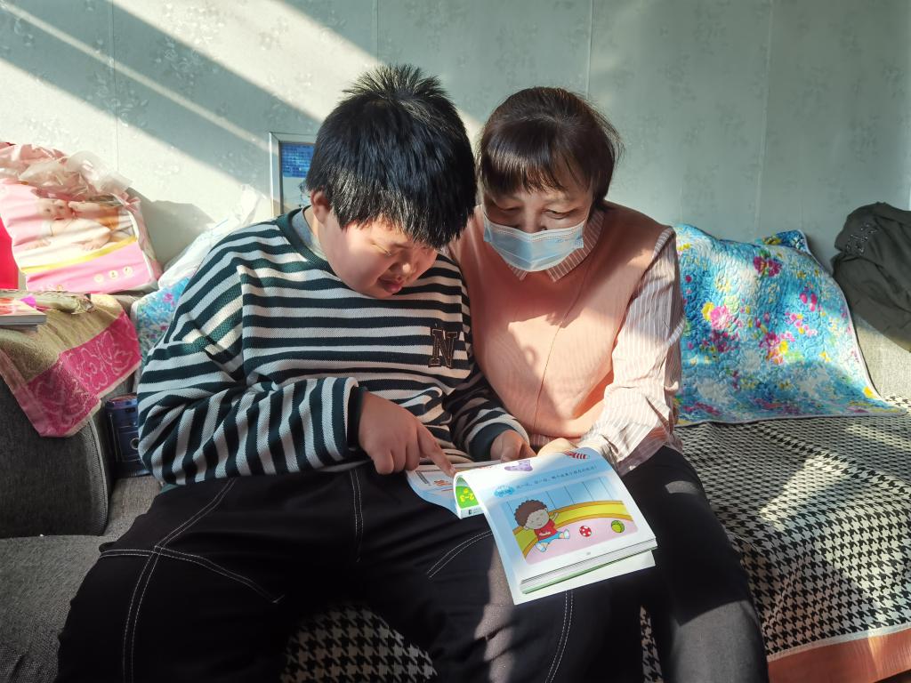 譚麗(右一)在患兒家中為其輔導功課。新華每日電訊記者 于力 攝