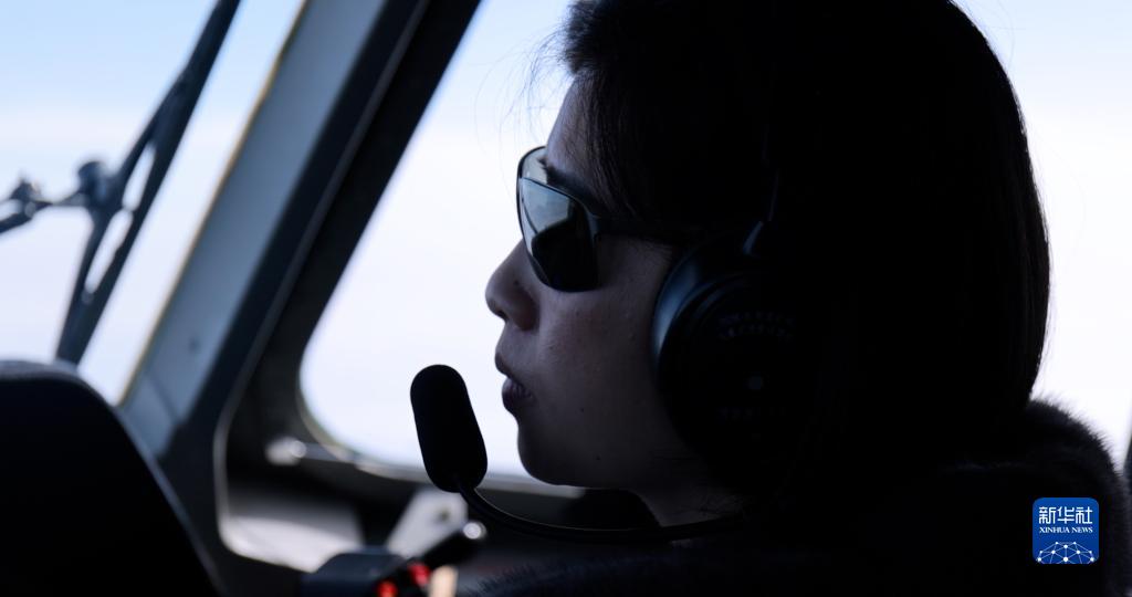全國人大代表、空軍特級飛行員陳金蘭在飛行訓練中與地面塔臺進行聯絡(2月24日攝)。新華社發(王銳杰攝)